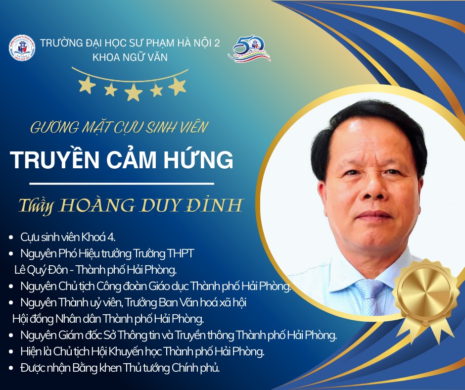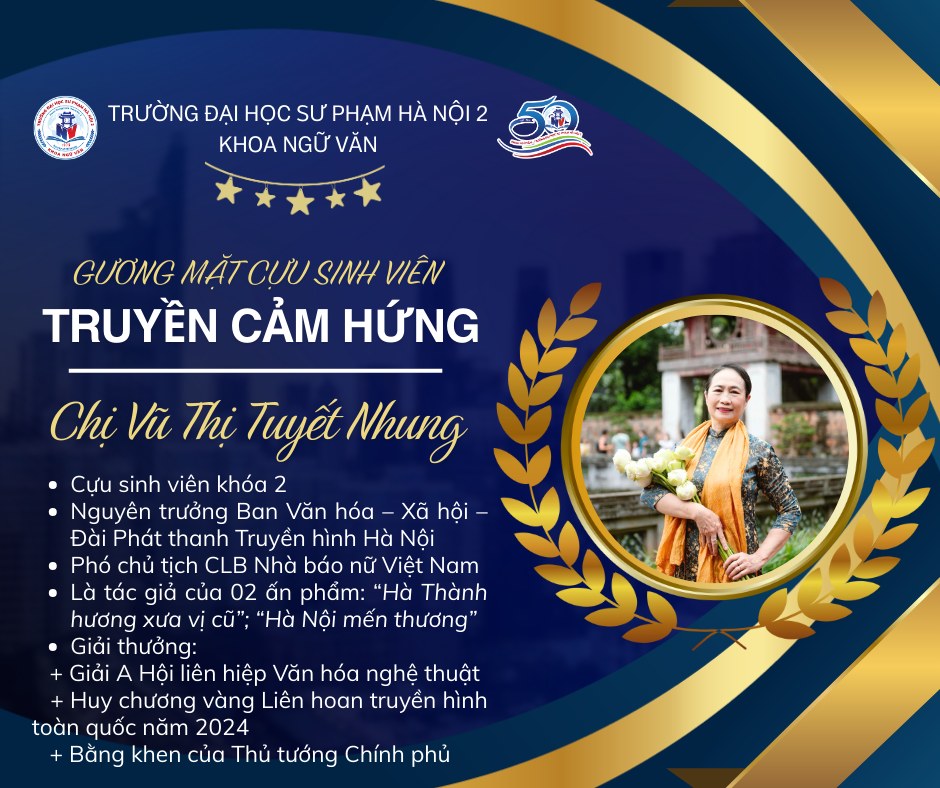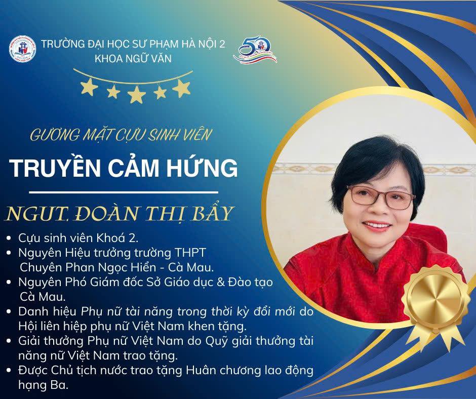 Hướng tới kỉ niệm 50 thành lập (1975-2025), Khoa Ngữ văn trân trọng giới thiệu tới quý thầy cô, các anh chị học viên, các bạn sinh viên mọi miền Tổ quốc chân dung 50 gương mặt cựu sinh viên truyền cảm hứng.